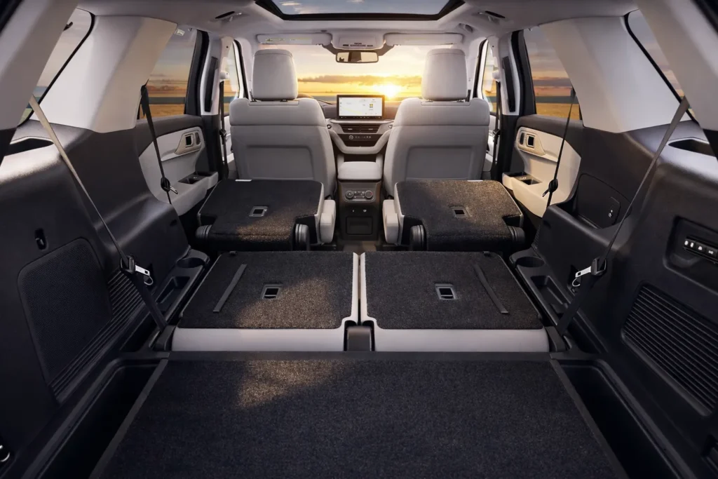 The Explorer typically seats up to seven passengers with its three‑row layout. You can also choose a six‑seat configuration with captain’s chairs for more comfort in the second row.