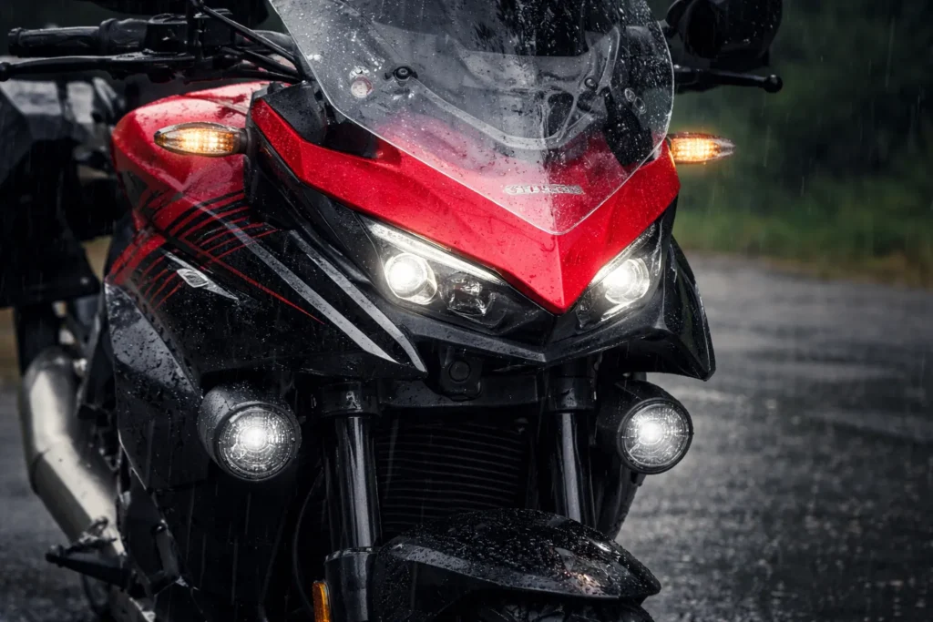 The bike has advanced tech including cornering ABS, traction control, multiple ride modes, a 6‑axis IMU, quickshifter, and electronic suspension. These systems make riding safer and more adaptable in many conditions.