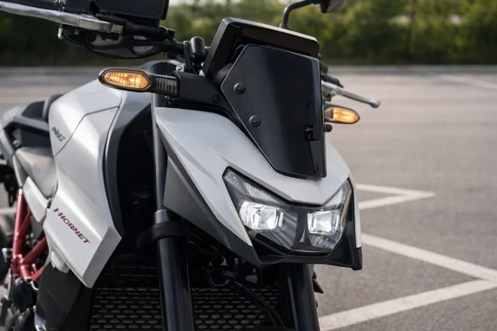 - Energy Efficiency: The Hornet’s effective fuel management system makes sure that you ride for long distances without thinking about refilling your tank. With its 15-litre tank of fuel this bike has an impressive range, making it ideal for long distance travel.